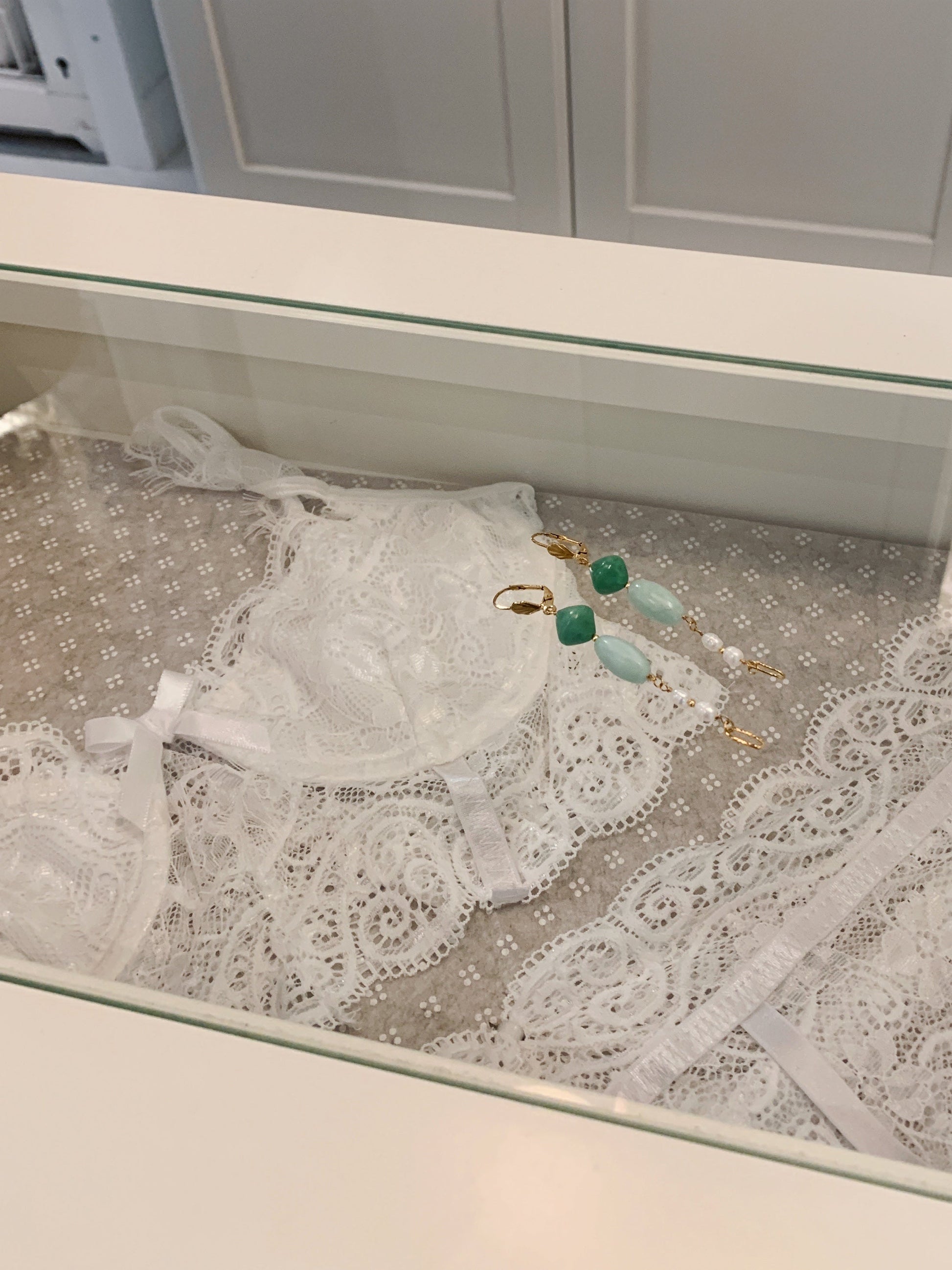 Store your earrings in a cool, dry place such as a pouch, one of our handmade dishes or our jewelry box.