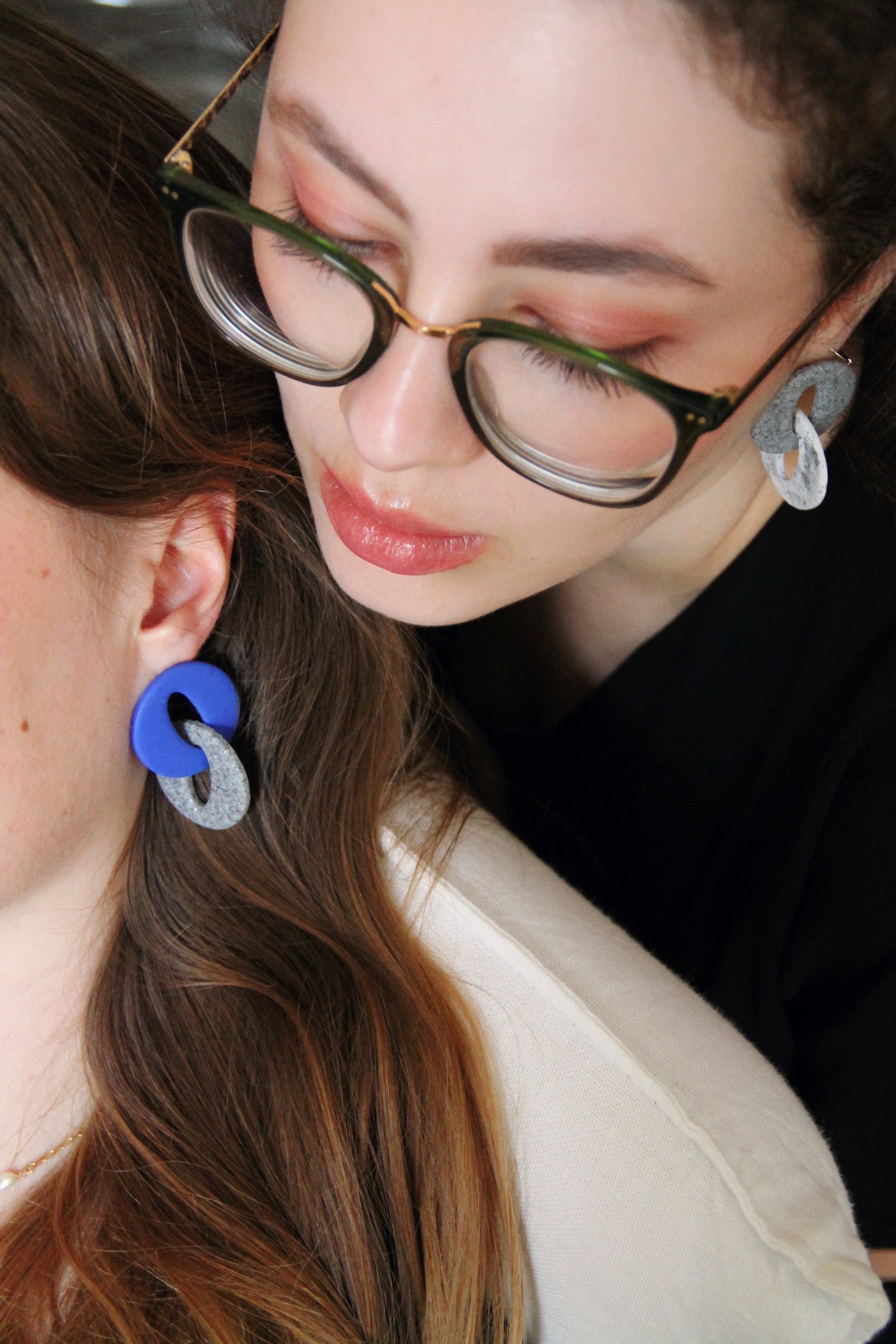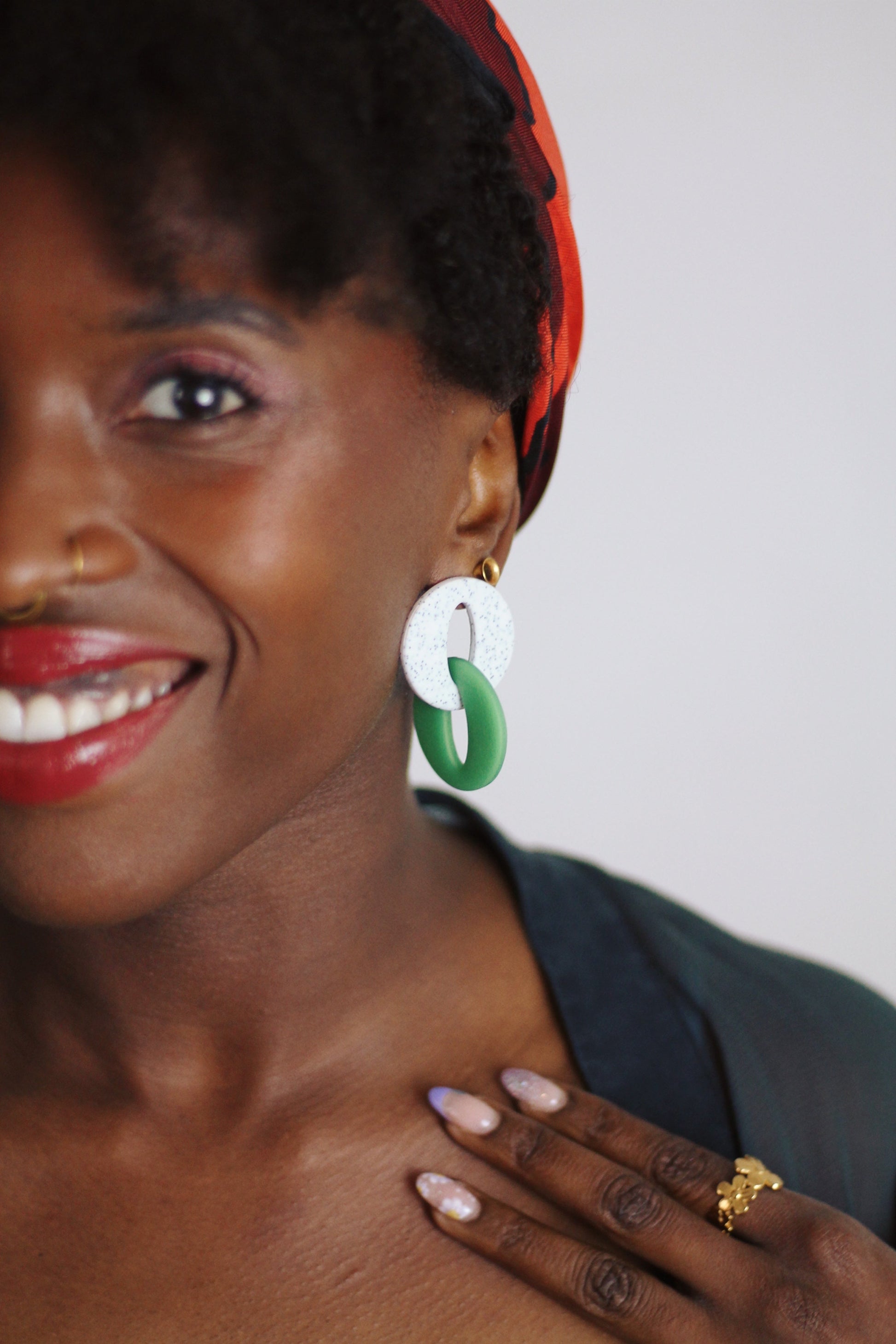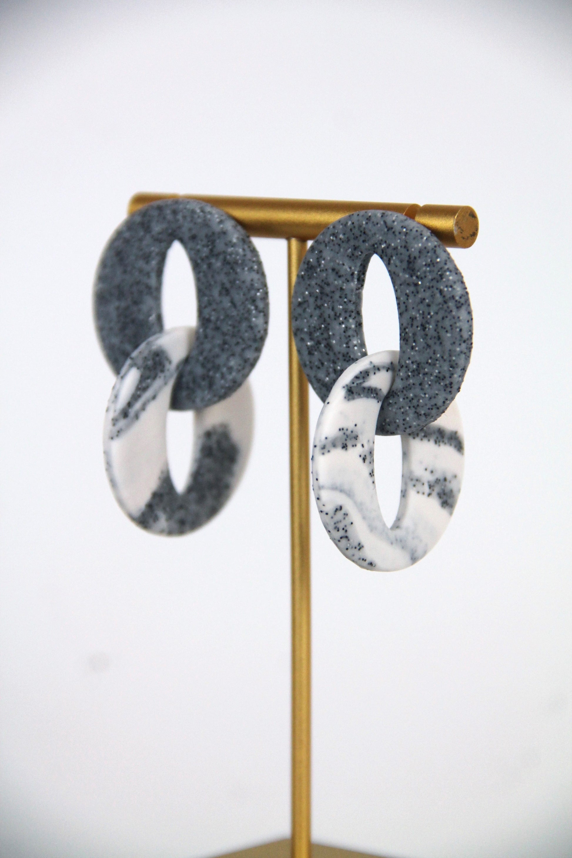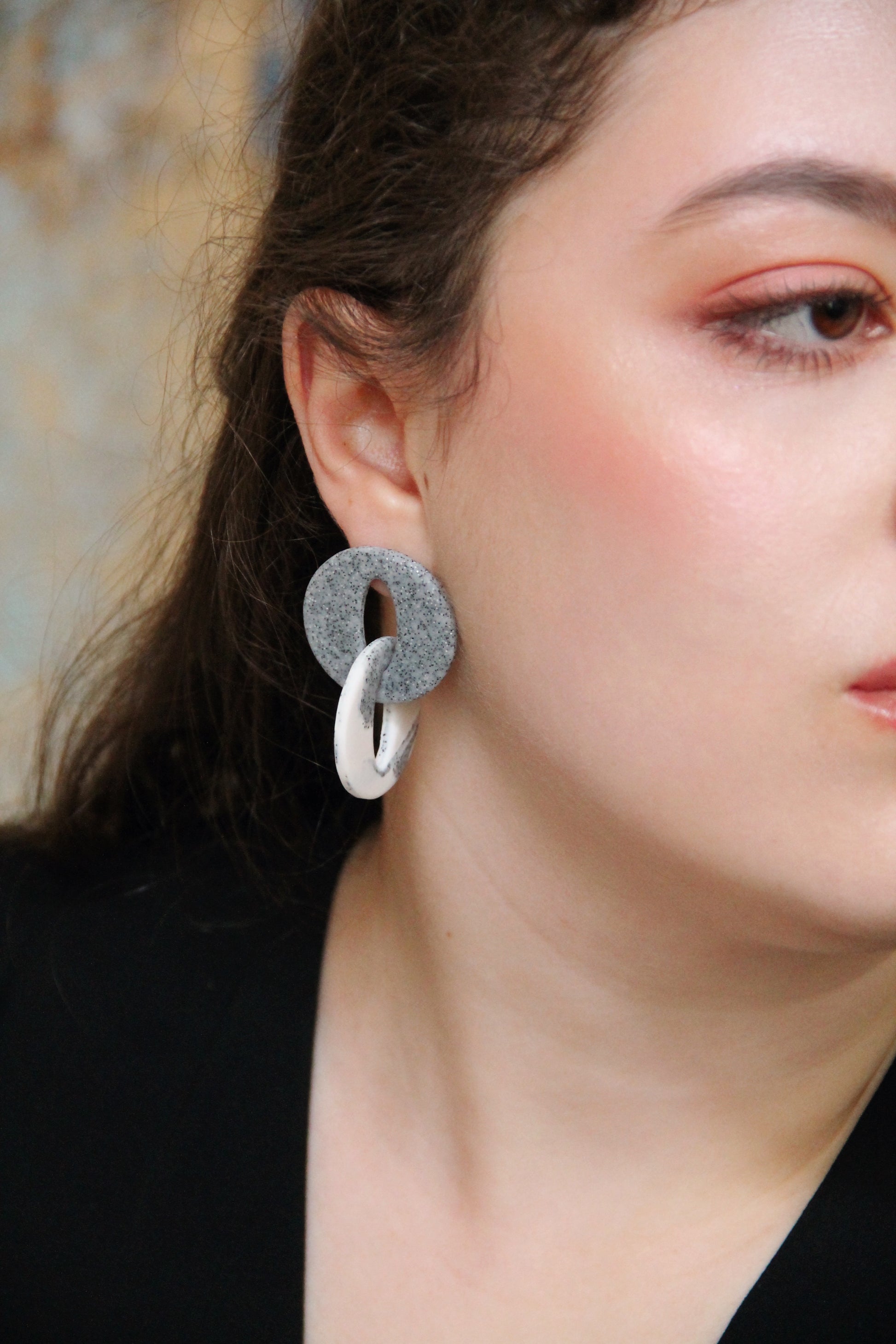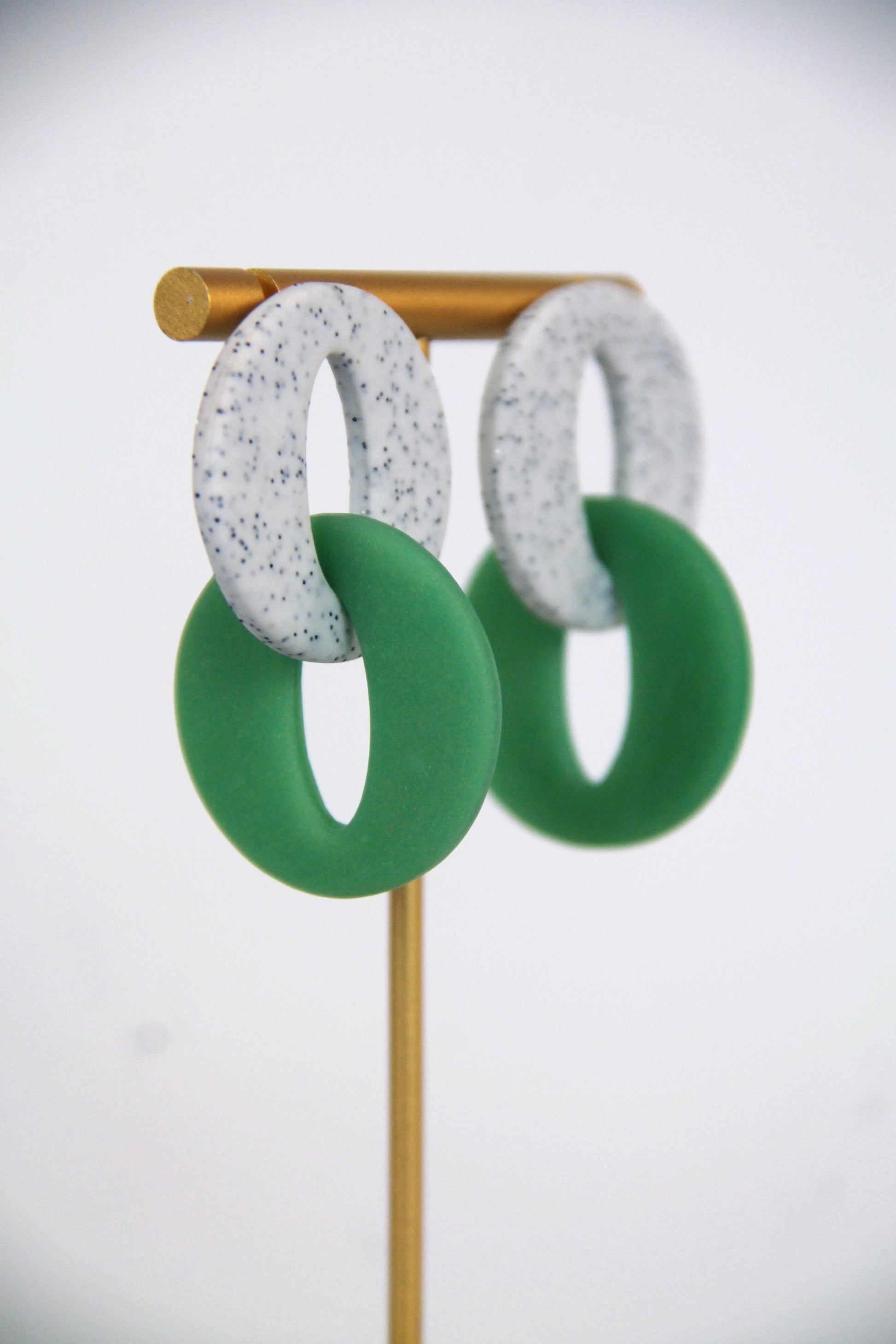 These earrings are handmade in the city of Antwerp, Belgium. Each item is delicately hand mixed, rolled out, cut, baked, sanded and assembled by hand from polymer clay. Clay is durable and lightweight.