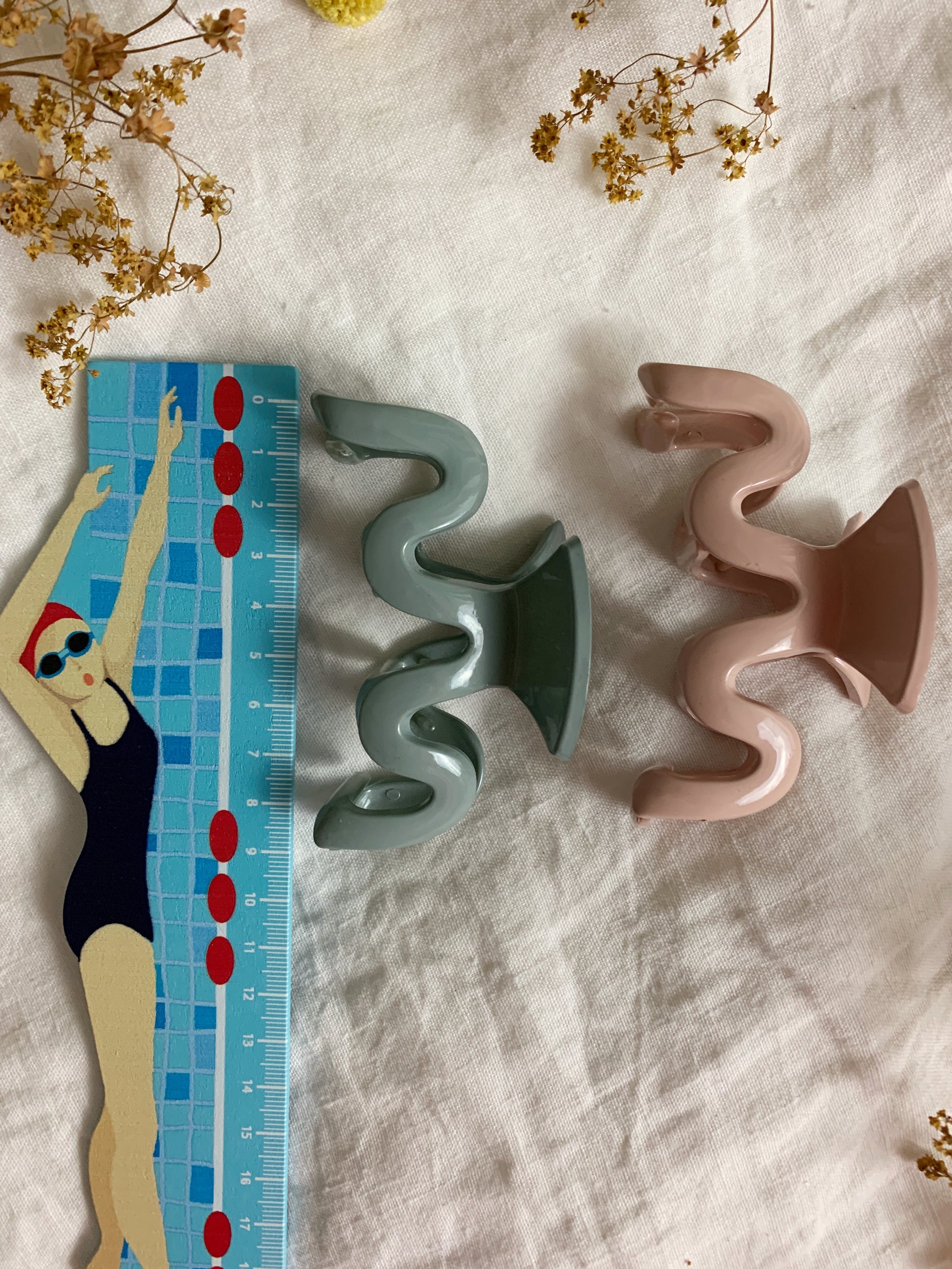 Introducing the colorful shiny GRACE hair claws in a modern squiggly shape.