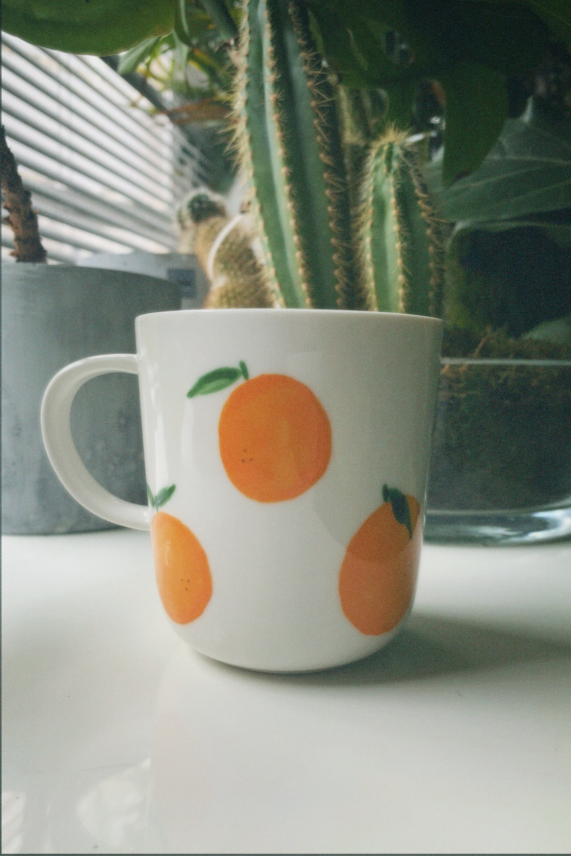 As we currently don’t have a picture of the latte mug with the oranges pattern, we added a reference picture of the pattern on another mug to give you an idea of what the pattern looks like.